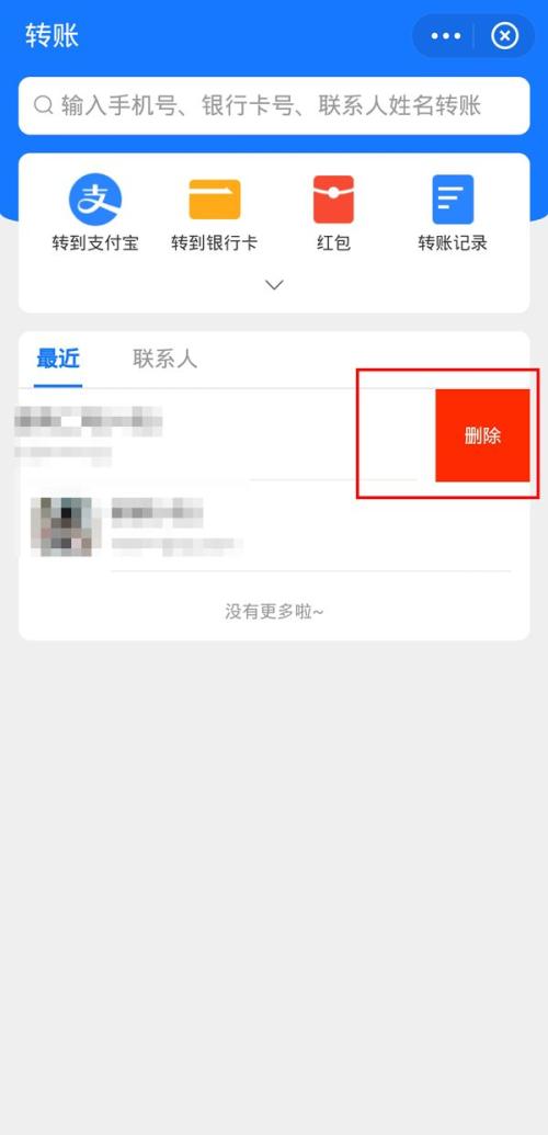 3、接着找到需要删除记录的转账人,再从右向左滑动,点击【删除】按钮即可。